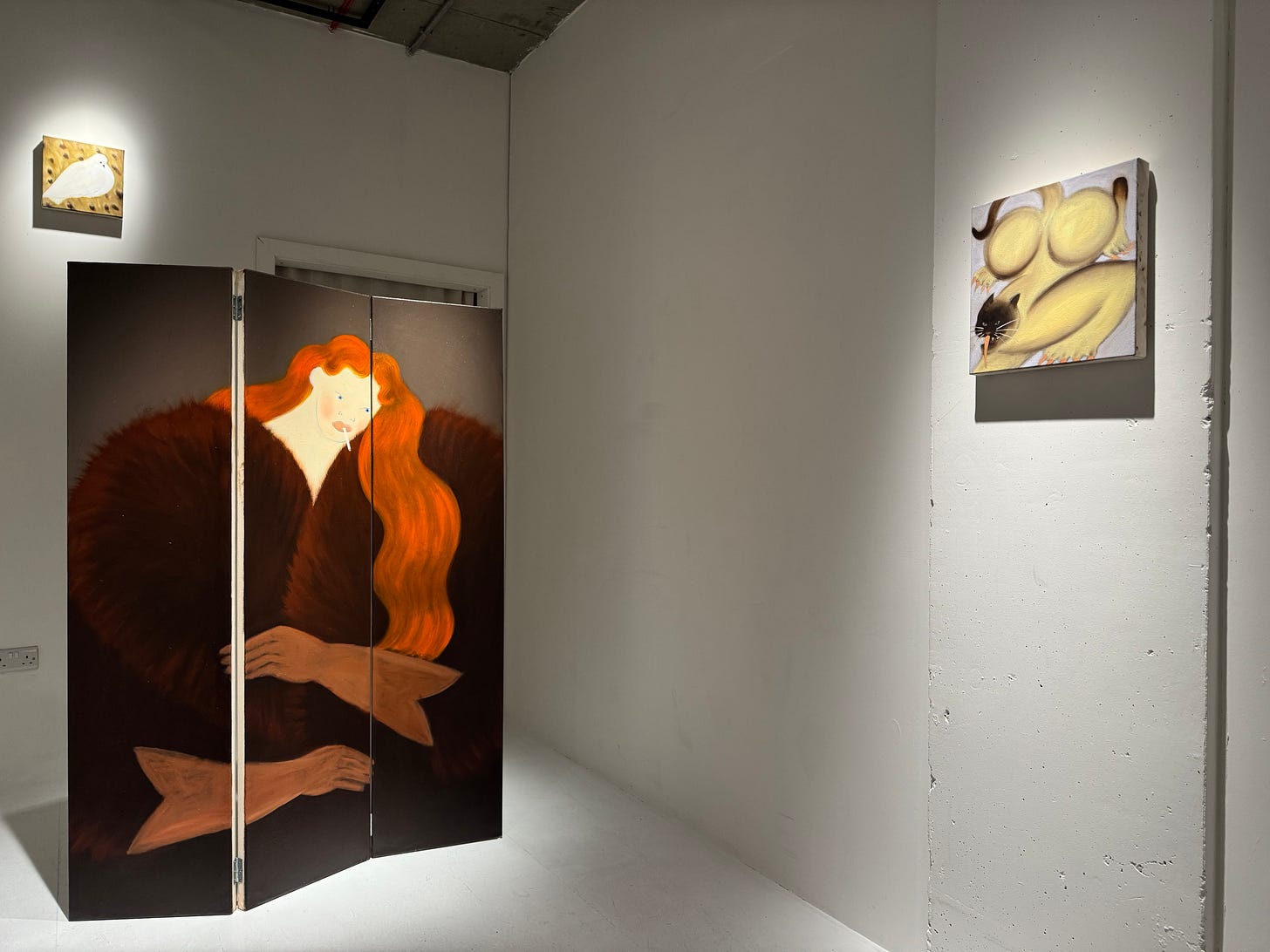 Miłość - Sophie Vallance Cantor (Haggerston) — Gatefold privacy screen canvasses and a dynamic hang that draws you in can’t hide the fact that the paintings push you away, but I haven’t yet decided if they just aren’t very good or just aren’t stylised enough to hold my focus. Possibly both? 🗓️ Until 14 Mar