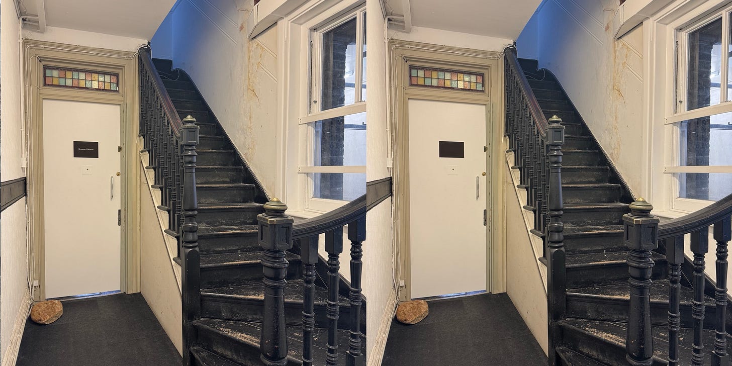 Last week’s doorway leads you into Brunette Coleman, located on the 2nd floor at 42 Theobalds Road, WC1X 8NW. Founded in 2023, the gallery has a strong focus on emerging and experimental art. Showing here is a great way for artists to boost their profile, thanks to the gallery’s frequent participation in cutting edge events like CONDO and Frieze.